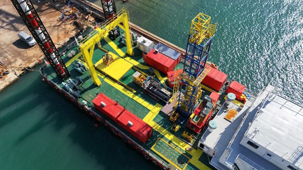 The GV20 is a Marine Drill rig for nearshore and offshore geotechnical operations. It is equipped with a heave compensation system and a 3-in-1 Bottom Hole Assembly(BHA) suitable for offshoregeotechnical drilling. The unit height of the GV20 marine drilling rig is 20 meters and is rated to a maximum load of 30 tons. The drill string is advanced via a Top Drive DANDO 500 Rotary Head which is motion compensated and fitted with a Mud Swivel and 4-inch stainless steel ball valve with air actuator.