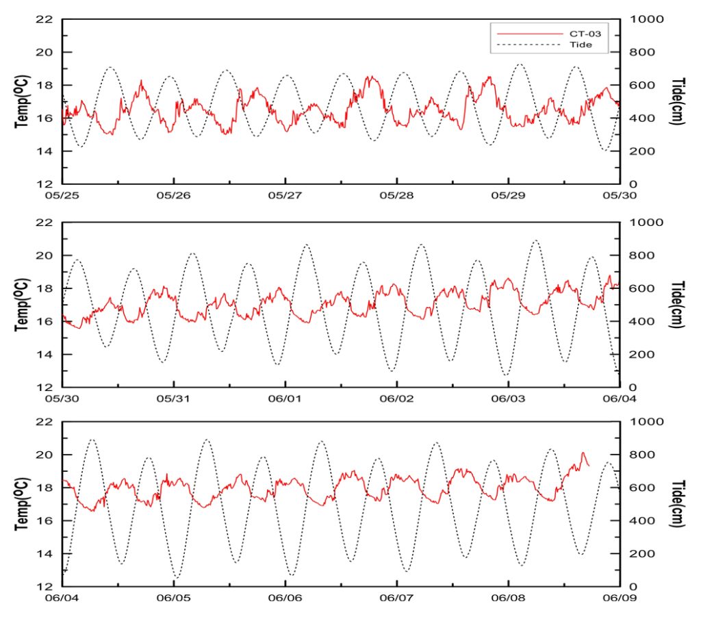 Field temperature change & water mass change analysis, temperature change with tide level, marine environmental impact assessment of cold and warm drainage