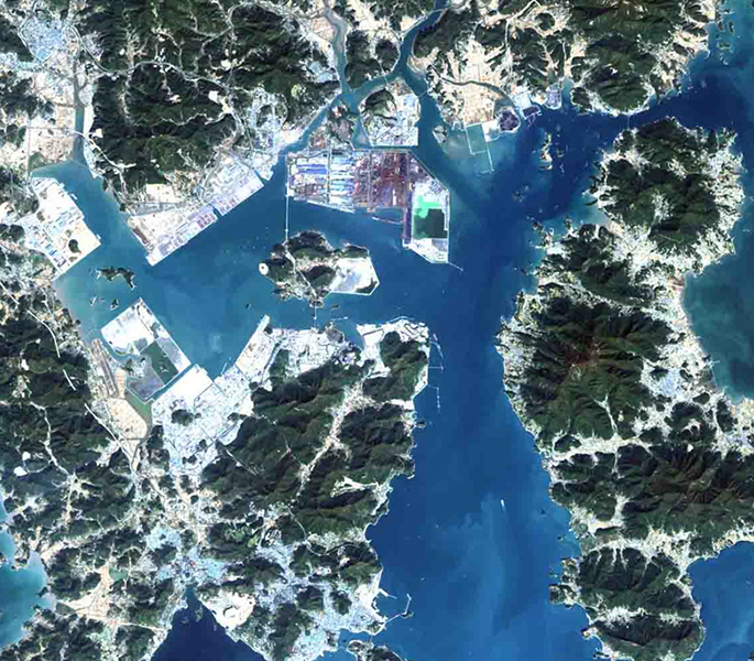 Observation and analysis for concentration of chlorophyll, temperature, concentration of suspended load, water color with wide range